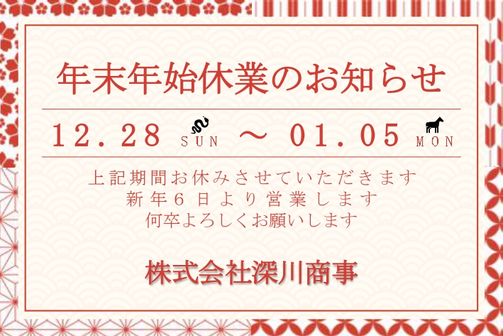 年末年始休業のお知らせ